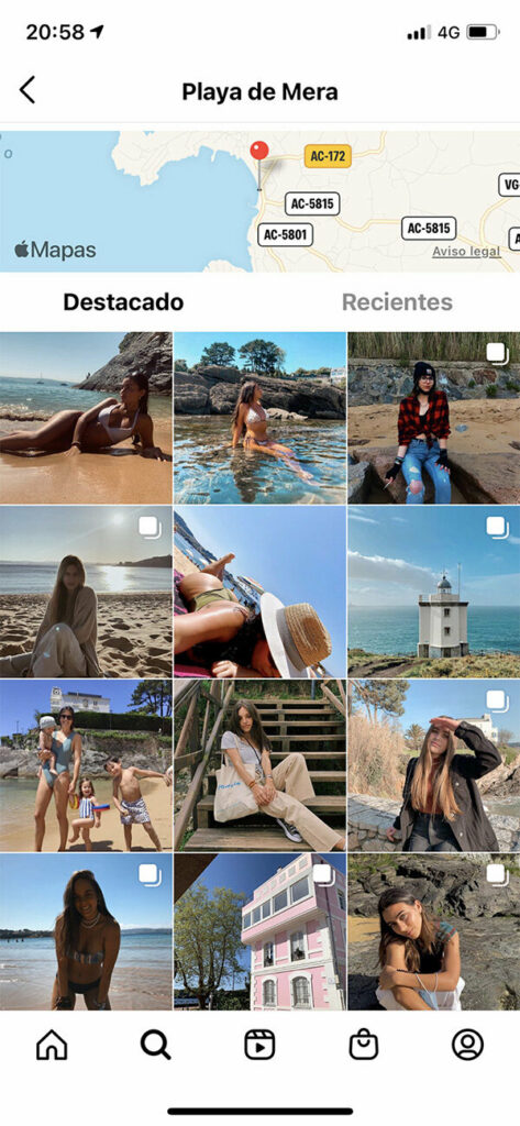 A practical example: when searching for a location on Instagram, for example a beach, it's common to find a result like this: