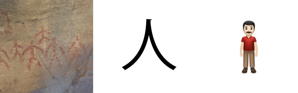 But what seems wonderful to me is the way in which written languages as different as Japanese and Spanish really start from the same base: simplifying representations of real elements into figures that subsequently compose a text. That is, first ideas were simplified graphically: icons were designed.